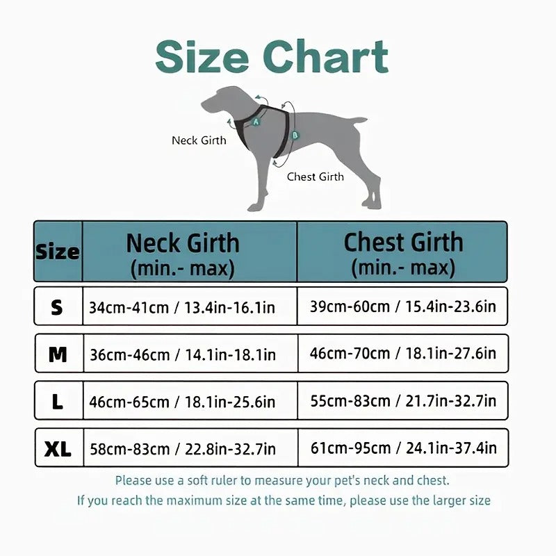 Comfort That Moves With Your Dog Crafted with soft, breathable mesh padding and an ergonomic shape, this harness distributes pressure evenly across your dog’s chest—never their neck. Adjustable straps around the chest and neck ensure a snug yet flexible fit, allowing freedom of movement while keeping your dog safe and comfortable.